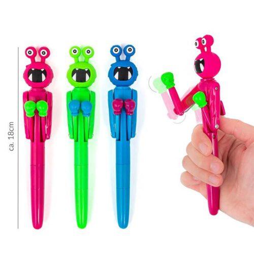 Die Kugelschreiber mit Monsterlook besitzen kleine Tasten an der Seite, mit der Mann sich mit Freunden in einem heißen Boxmatch messen kann.