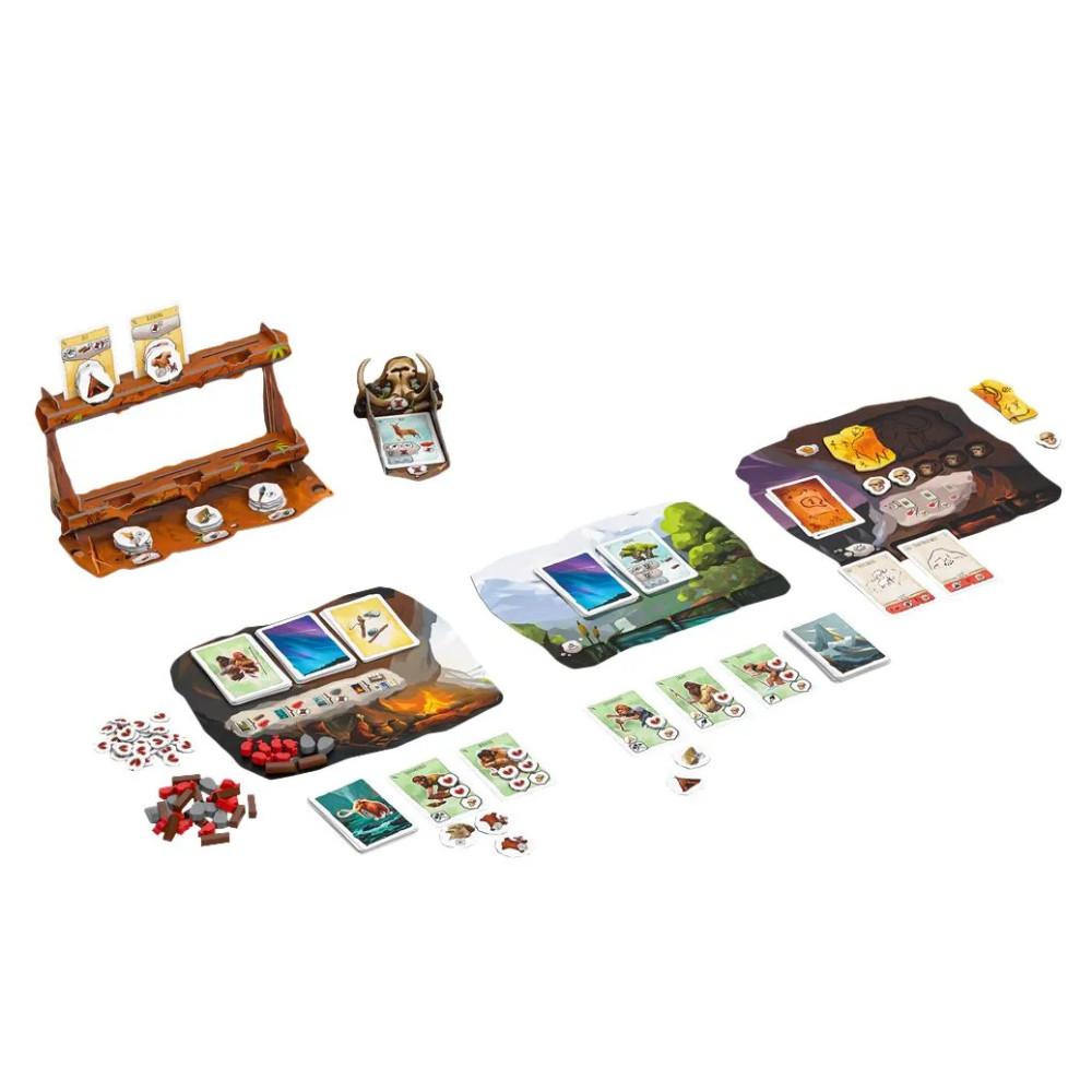Dieses kooperative Brettspiel fordert euch heraus, als Team zu agieren, Ressourcen zu sammeln, Werkzeuge herzustellen und gefährliche Begegnungen zu überstehen. Doch Vorsicht: Nicht alles, was ihr entdeckt, ist freundlich gesinnt! Nur wer clever zusammenarbeitet und sich strategisch mit den Tieren, fremden Stämmen und unvorhersehbaren Ereignissen auseinandersetzt, wird den harten Alltag der Steinzeit überleben.